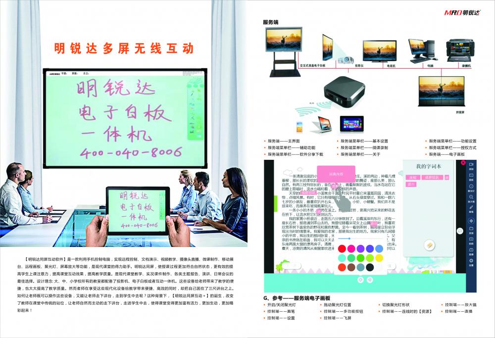 在企事業(yè)單位日常運營活動中,會議、培訓、討論、策劃、頭腦風暴等形式的協(xié)作過程幾乎無時無刻不在發(fā)生,協(xié)作效率的高低直接影響著企業(yè)運營的效率。然而我們非常遺憾的看到,目前國內(nèi)的會議室依舊普遍采用非常原始的書寫白板配合投影幕布的方式,工作效率低下,協(xié)作方式繁瑣。書寫白板雖然簡單易用,但是書寫之后不易保存,更不易于分發(fā),而且書寫之后避免不了擦除的麻煩;投影機和幕布的組合雖然可以將非常豐富多媒體內(nèi)容呈現(xiàn)出來