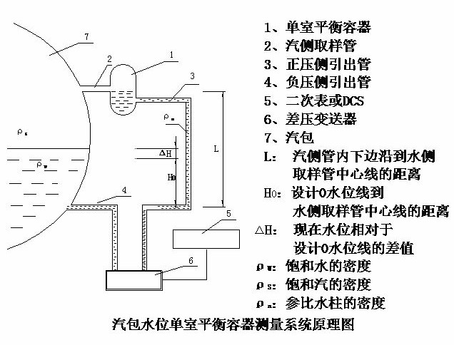 單室平衡容器主要測(cè)量原理:利用正壓測(cè)、負(fù)壓側(cè)形成的差壓信號(hào)到變送器,變送器將信號(hào)傳送到DCS內(nèi)進(jìn)行公示計(jì)算,然后實(shí)現(xiàn)水位的測(cè)量。單室平衡容器與差壓變送器配套使用,對(duì)汽包水位進(jìn)行監(jiān)控,并對(duì)外輸出水位變化時(shí)的差壓信號(hào),差壓變送器再將差壓信號(hào)轉(zhuǎn)化成電信號(hào)送入DCS系統(tǒng)或其它的顯示儀表或控制設(shè)備,只能反映鍋爐正常運(yùn)行時(shí)汽包內(nèi)的水