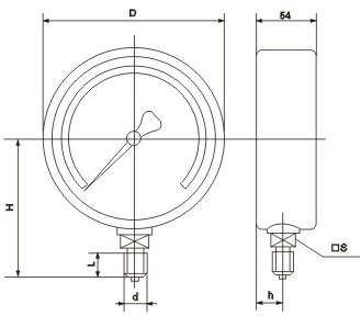 儀表由測量系統(tǒng)(包括接頭膜盒等)、傳動機構(gòu)、指示裝置和外殼組成。