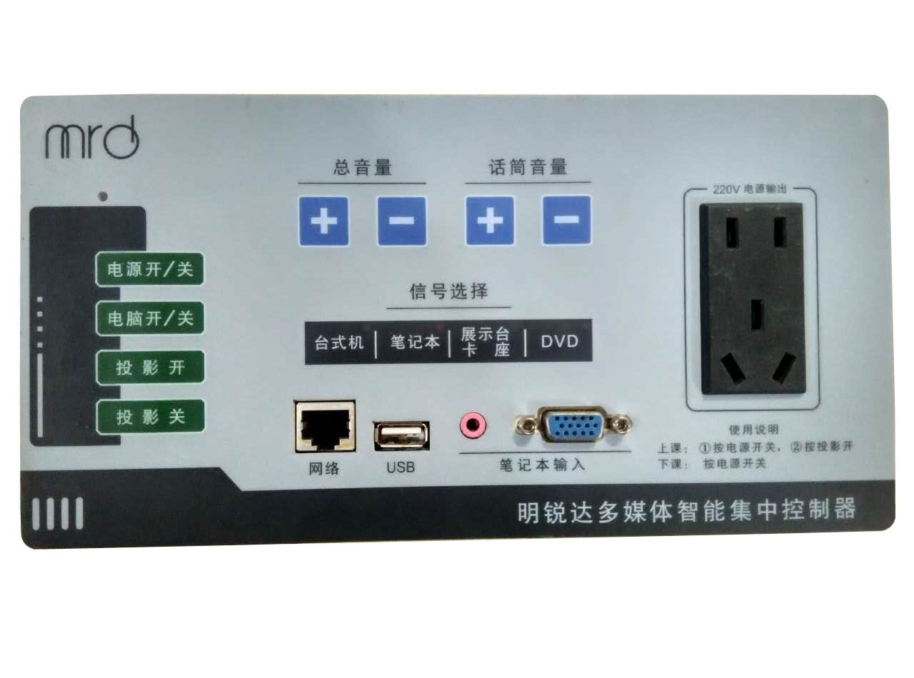 全貼片工藝制造,更加穩(wěn)定可靠采用一體化結(jié)構(gòu),安裝方便,維護(hù)更加簡單(開孔尺寸:212mm×105mm)智能聯(lián)動,一鍵開關(guān)機?!吧险n”,“下課”鍵可選擇聯(lián)動投影機、幕布、電腦 開關(guān),通過撥碼開關(guān)設(shè)置聯(lián)動更方便 投影機延時斷電 ,使投影機充分散熱,有效延長投影機使用壽命1、內(nèi)置VGA 3×2切換器,音頻4×1切換器,視頻2×1切換器 2、1路話筒輸入,內(nèi)置話筒混音放大功能